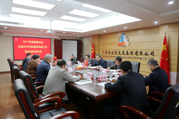 1月12日,集體公司召開2017年度直屬企業(yè)黨組織書記抓基層黨建工作現(xiàn)場述職評議會。集團(tuán)公司黨委書記朱堅和,黨委副書記張友坐、翁科,紀(jì)委書記韋慶和以及自治區(qū)國有企業(yè)監(jiān)事會代表出席會議。